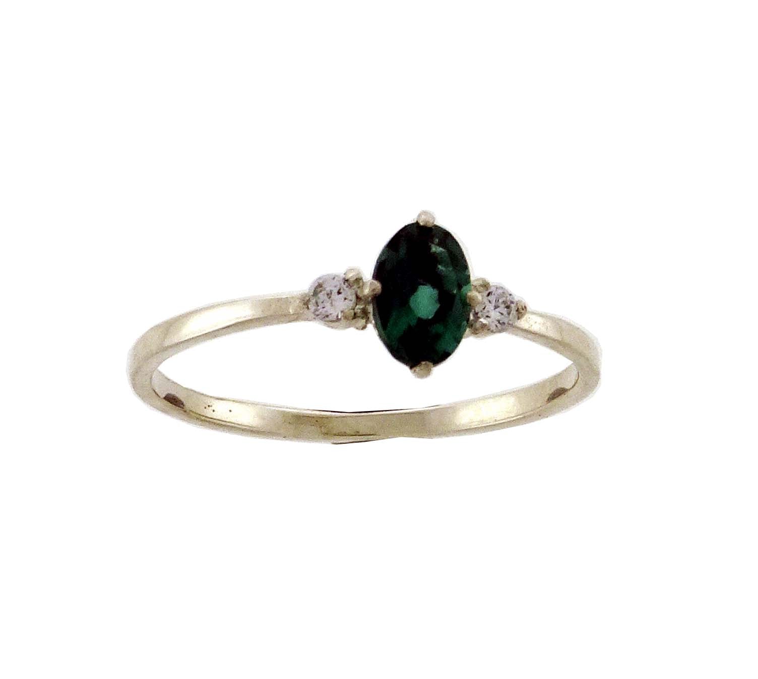 RGQ100M Green Quartz Facet 6x4mm & CZ Ring